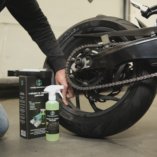 Bestellen Sie jetzt dieses praktische Felgen- und Kettenreinigungsset. Ehe Sie sich versehen, sind Sie schon wieder auf der Straße.