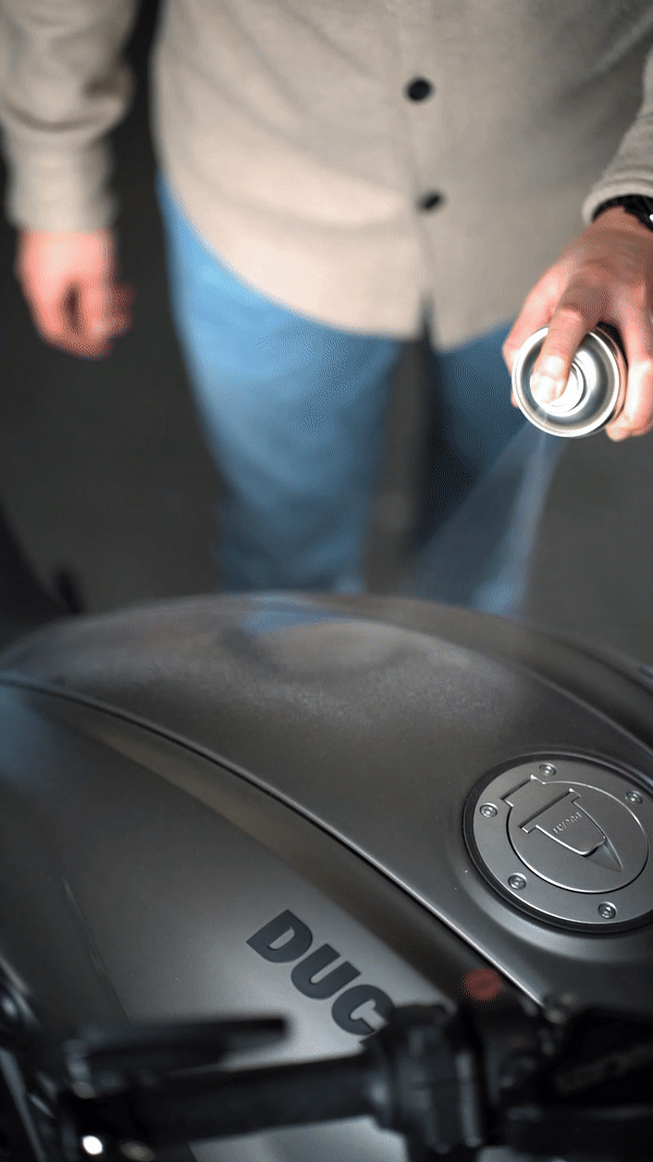 Eine temporäre Wachsschicht erledigt den Job. Glänzende Oberflächen bleiben glänzend, matte Teile bleiben matt. Sie weist Wasser und Schmutz von Kunststoffverkleidungen, Carbon, lackierten Teilen und Metallen ab – das erleichtert die Reinigung Ihres Motorrads. Die Wirkung des Wachses lässt nach starkem Regen oder einer Wäsche mit Motorradreiniger nach.