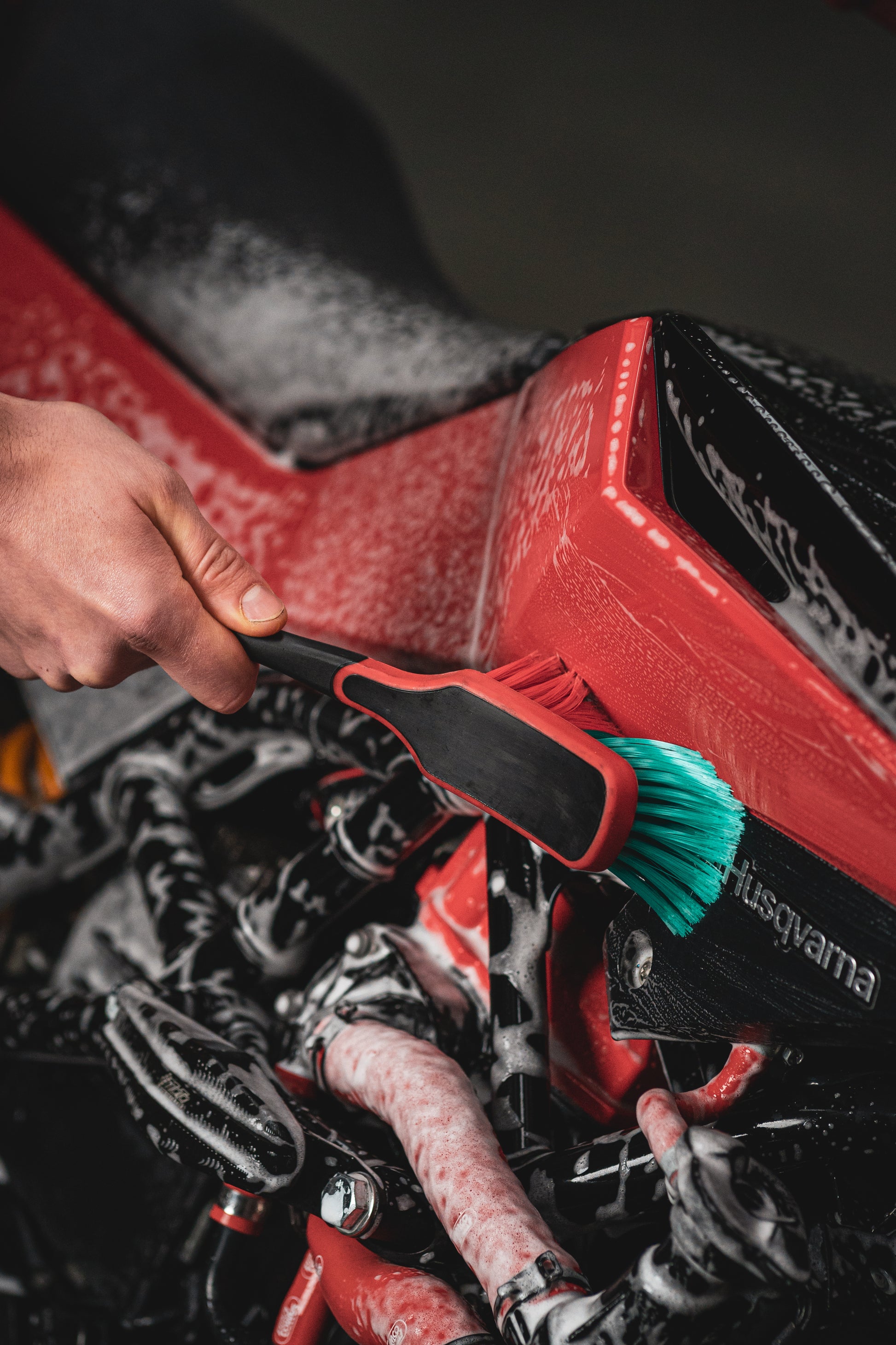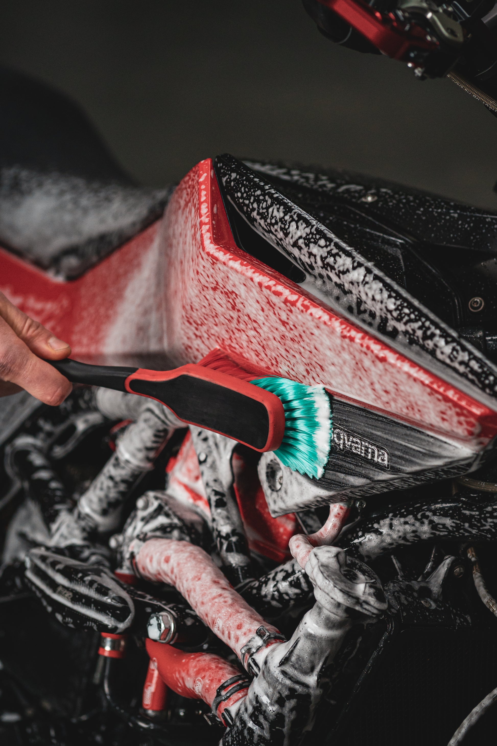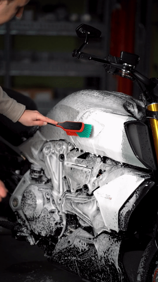 Jede Ecke, Kühlrippe oder schwierige Stelle wird mit dieser Bürste poliert. Das macht das Waschen viel einfacher. Besonders wenn Sie einen luftgekühlten Motor haben, ist diese Waschbürste ein Plus. Sie findet leicht ihren Weg zwischen die Kühlrippen.